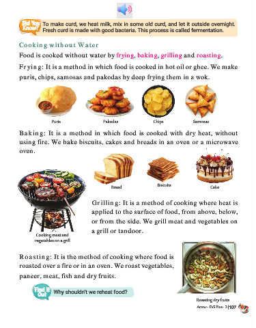 using fire. We bake biscuits, cakes and breads in an oven or a microwave