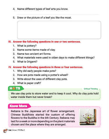 IV. Answer the following questions in three or four sentences.