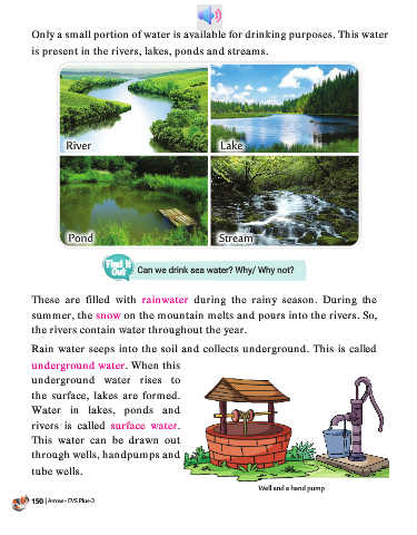 Only a small portion of water is available for drinking purposes. This water