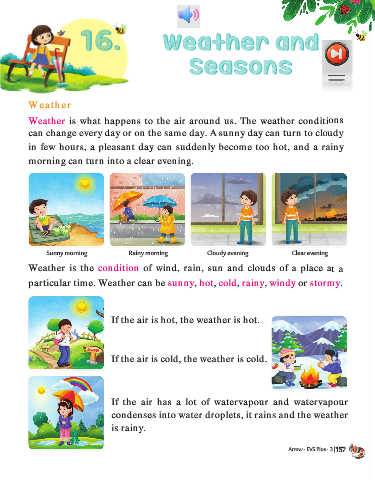 particular time. Weather can be sunny, hot, cold, rainy, windy or stormy.