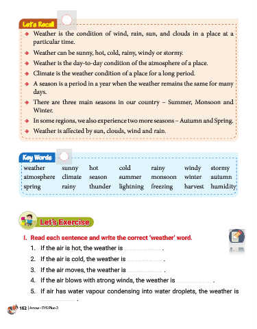 Weather can be sunny, hot, cold, rainy, windy or stormy.