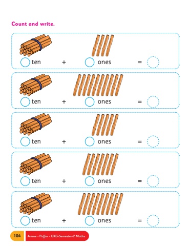 104 Arrow - Puffin - UKG-Semester-2 MathsCount and write. ten + ones = ten + ones = ten + ones = ten + ones = ten + ones =