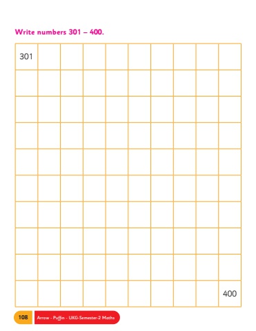 108 Arrow - Puffin - UKG-Semester-2 MathsWrite numbers 301 %u2013 400.301400
