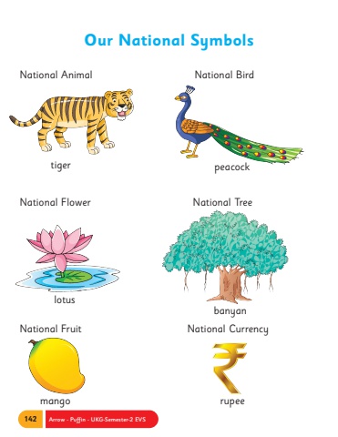 142 Arrow - Puffin - UKG-Semester-2 EVSOur National SymbolstigerlotusmangopeacockbanyanrupeeNational Animal National BirdNational Flower National TreeNational Fruit National Currency