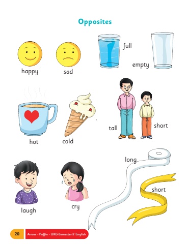20 Arrow - Puffin - UKG-Semester-2 EnglishOppositessadfullempty happyhot coldtall shortlaugh crylongshort