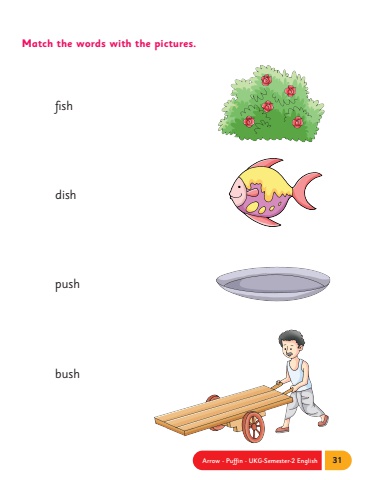 Arrow - Puffin - UKG-Semester-2 English 31Match the words with the pictures.fishdishpushbush