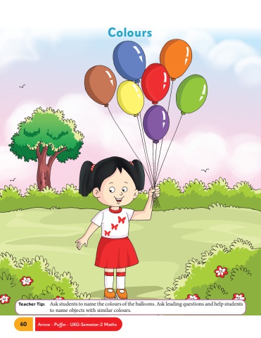 60 Arrow - Puffin - UKG-Semester-2 MathsColoursTeacher Tip: Ask students to name the colours of the balloons. Ask leading questions and help students to name objects with similar colours.